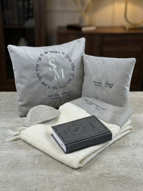 סט כיסויים- יברכך אפור רקמה