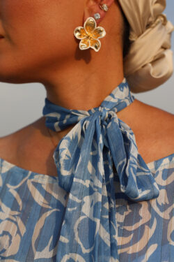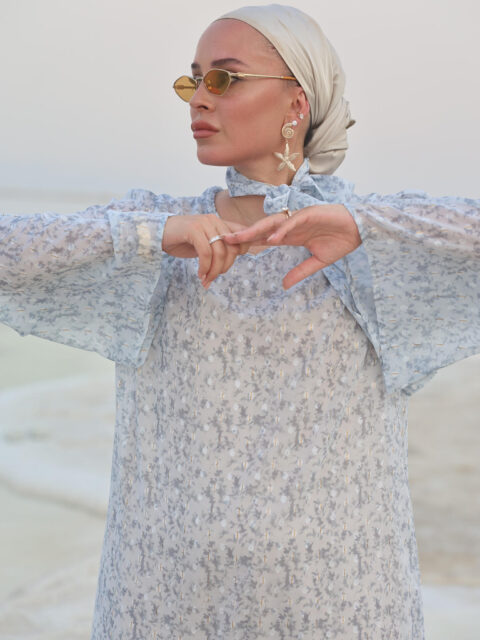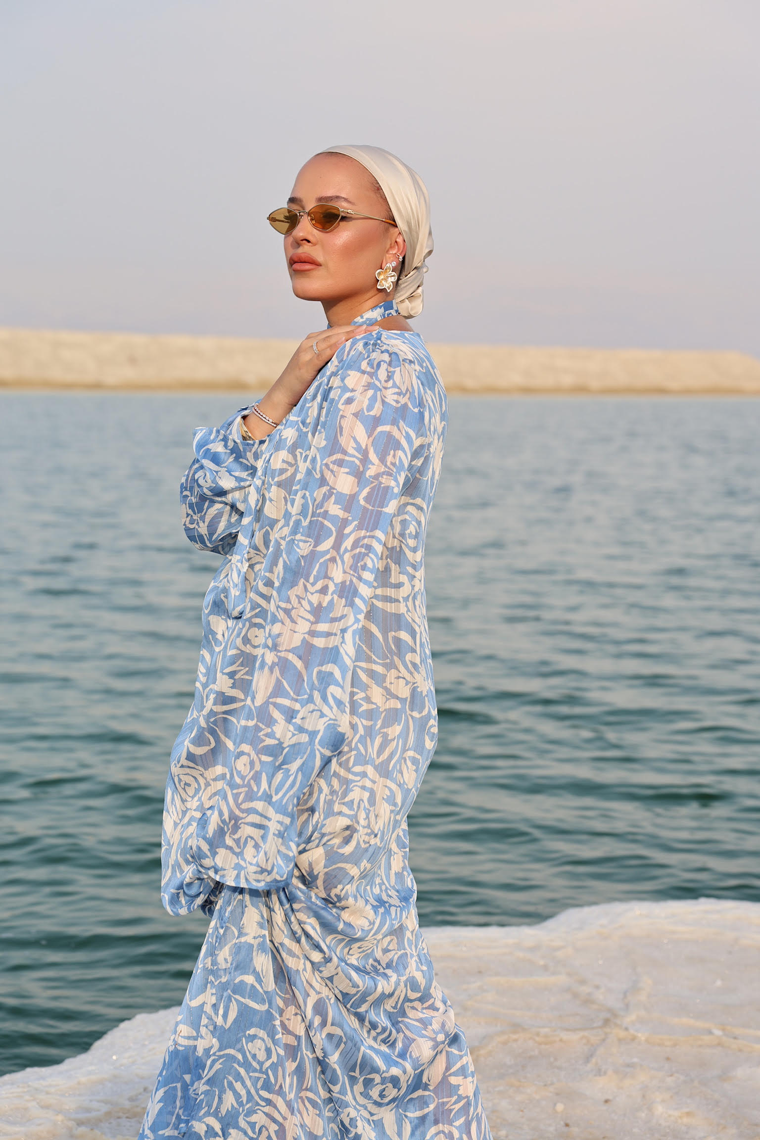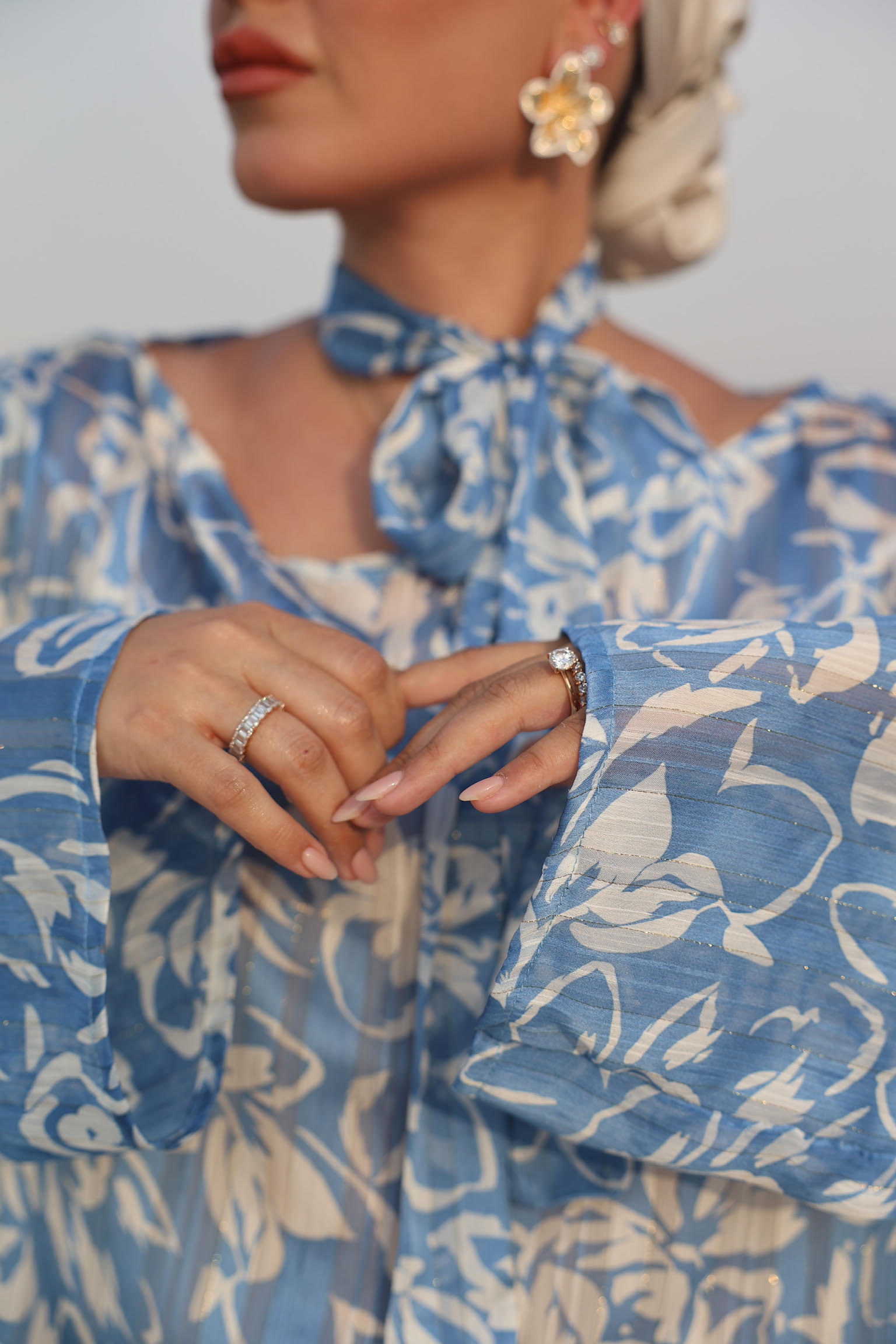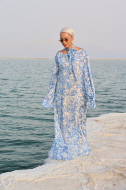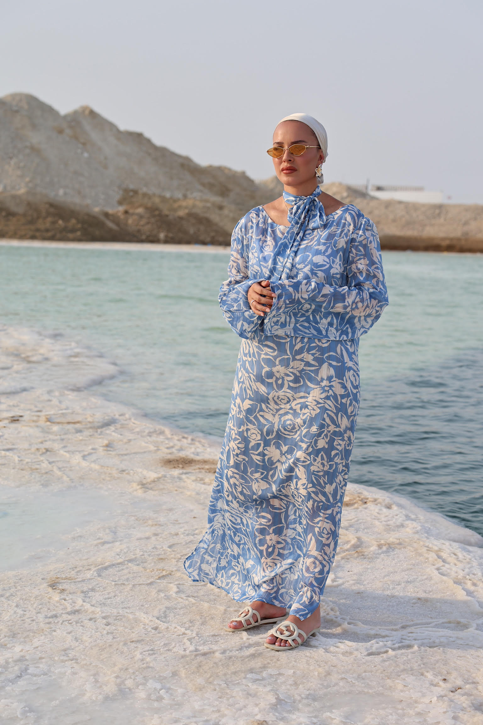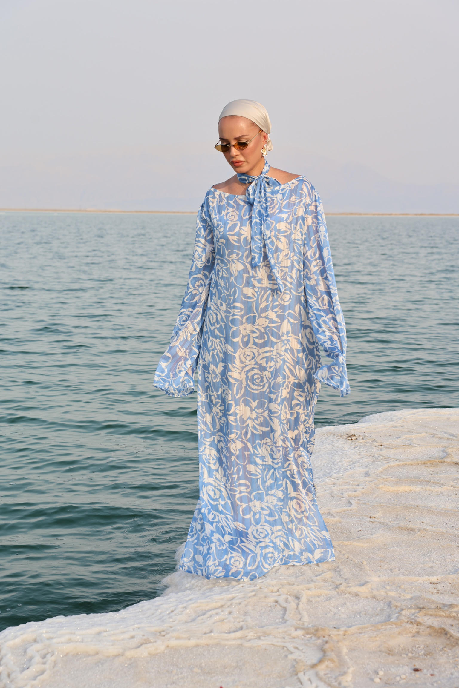 שמלת שיפון ארוכה בצבעי ים קסומים עם שרוולים רחבים