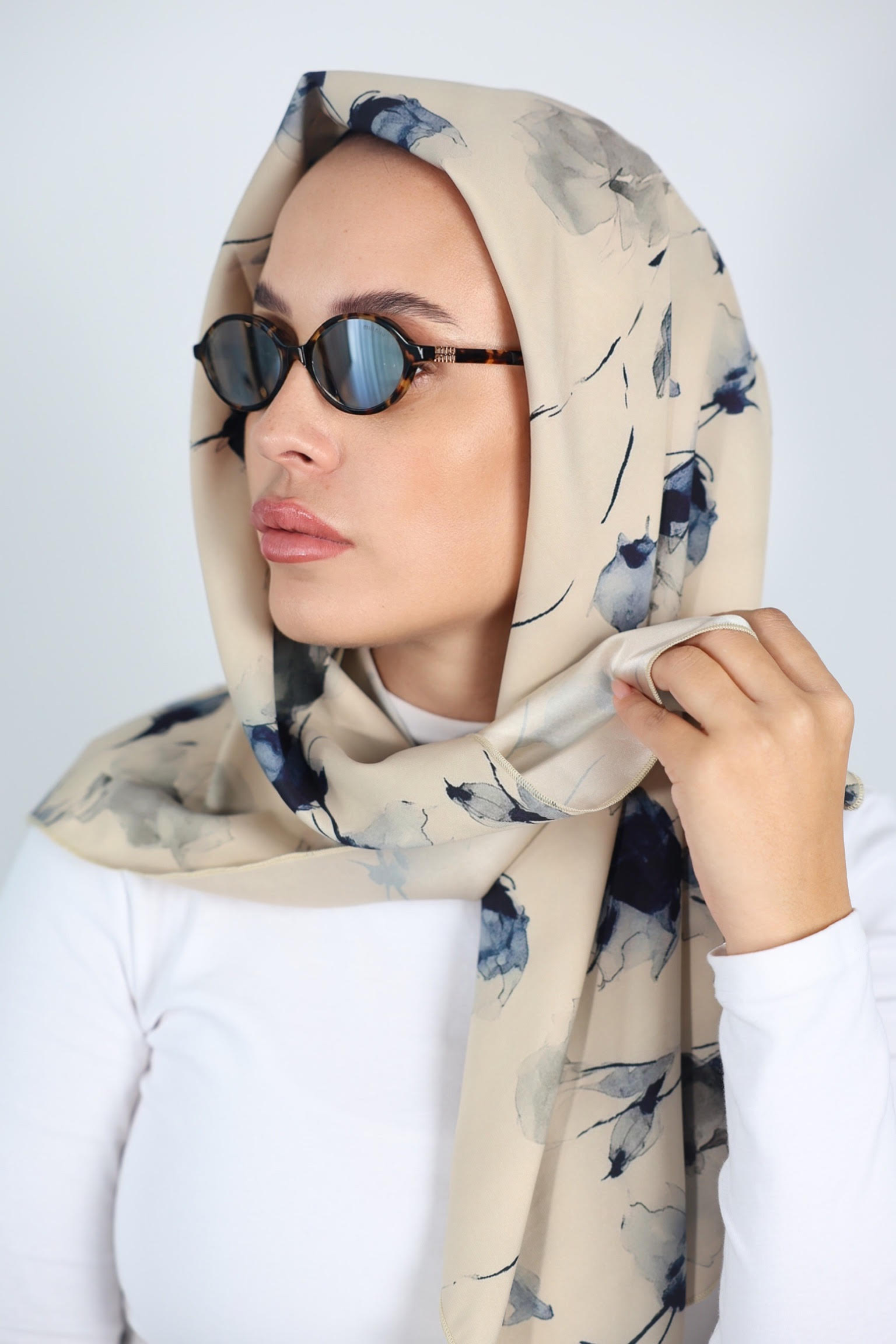 דגם שמנת פרח כחול סטן-כיסוי מלא