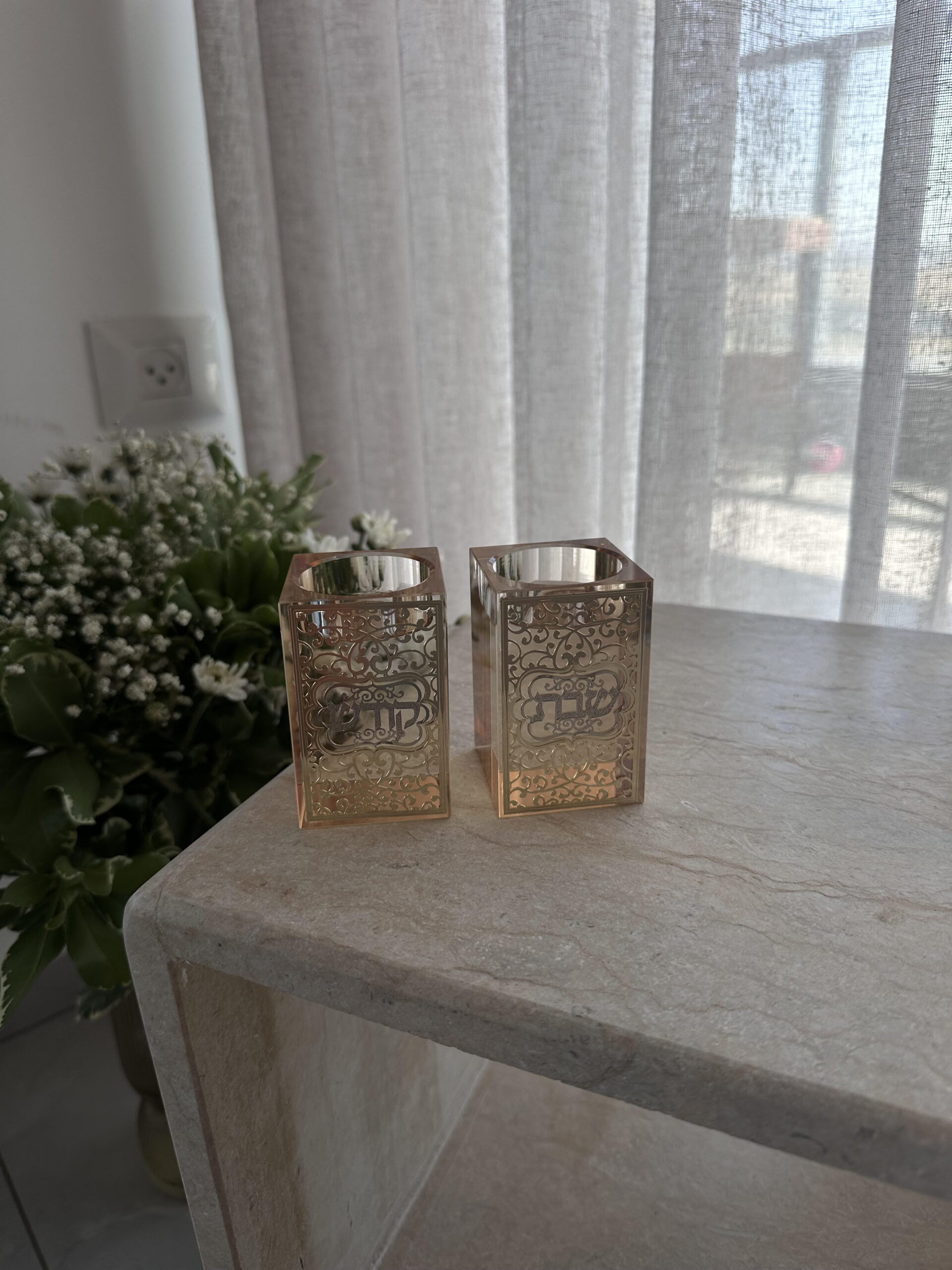זוג פמוטי קריסטל נמוכים- שבת קודש