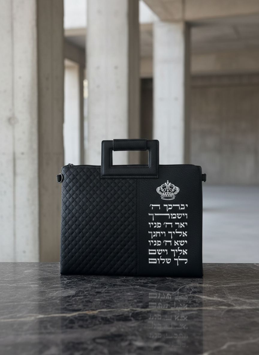 תיק מפואר לטלית ותפילין דמוי עור גוון שחור עם ידית.