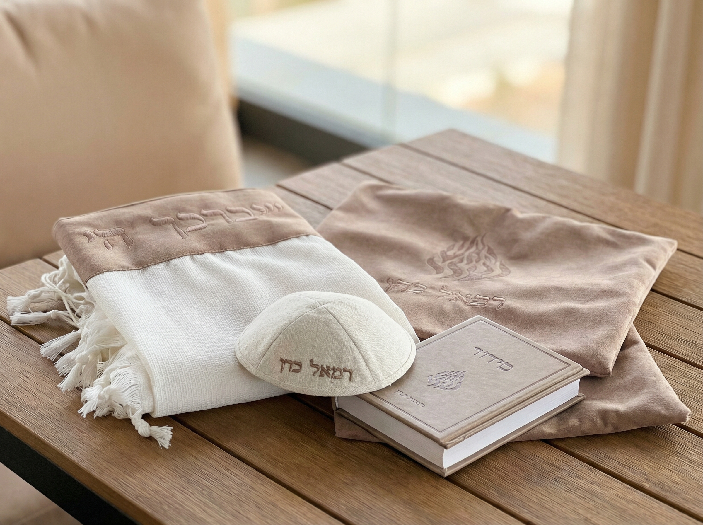 1.כיסוי טלית ותפילין כולל רקמת שם-