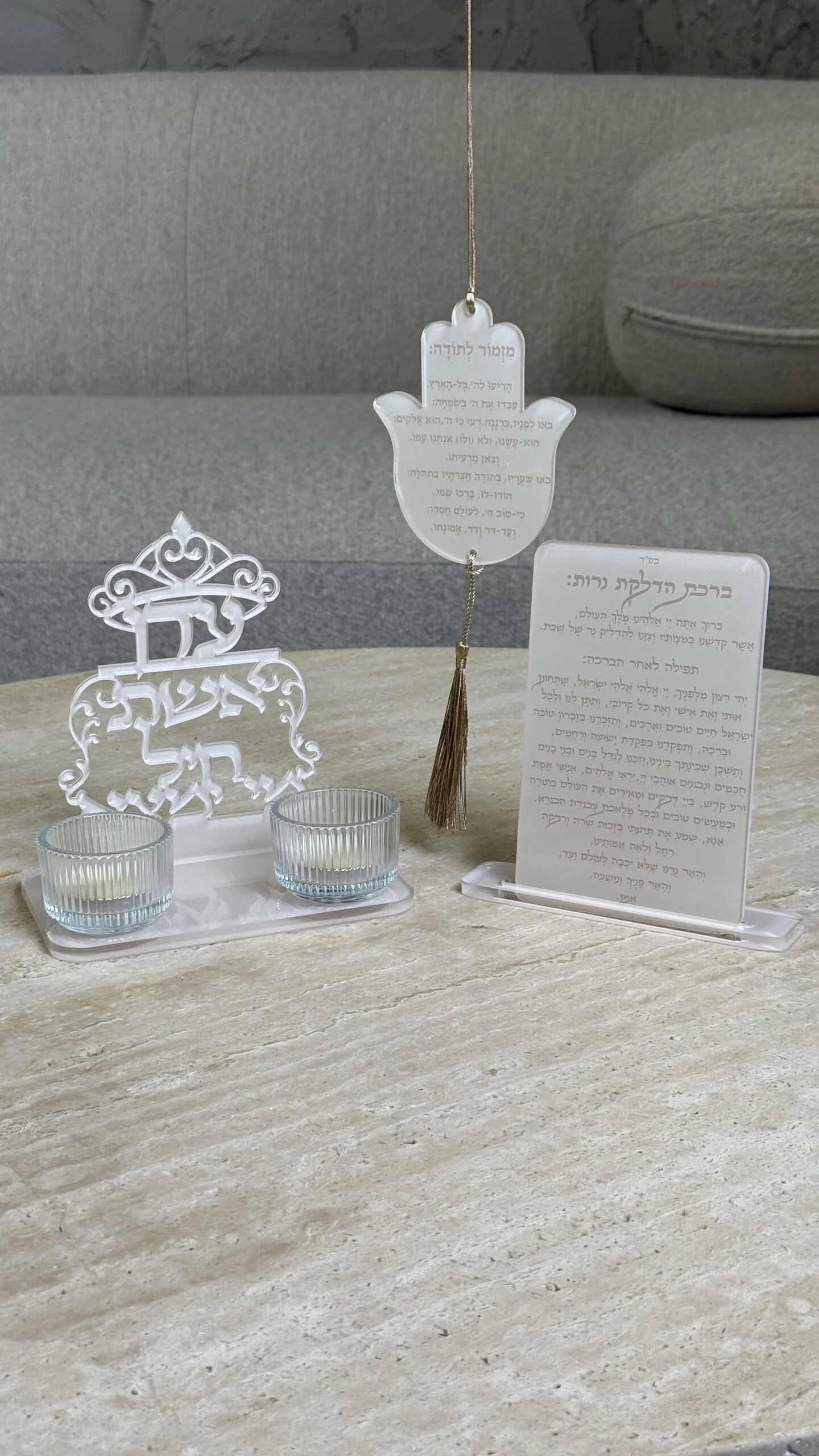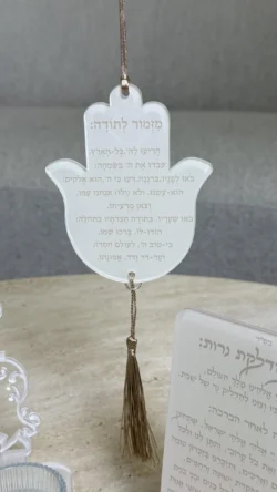 *מארז מדיום- פמוטים עם שם+ברכון הדלקת נרות+ תליון מזמור לתודה+ מטפחת תחרה ואות מובלטת – 240 ש”ח