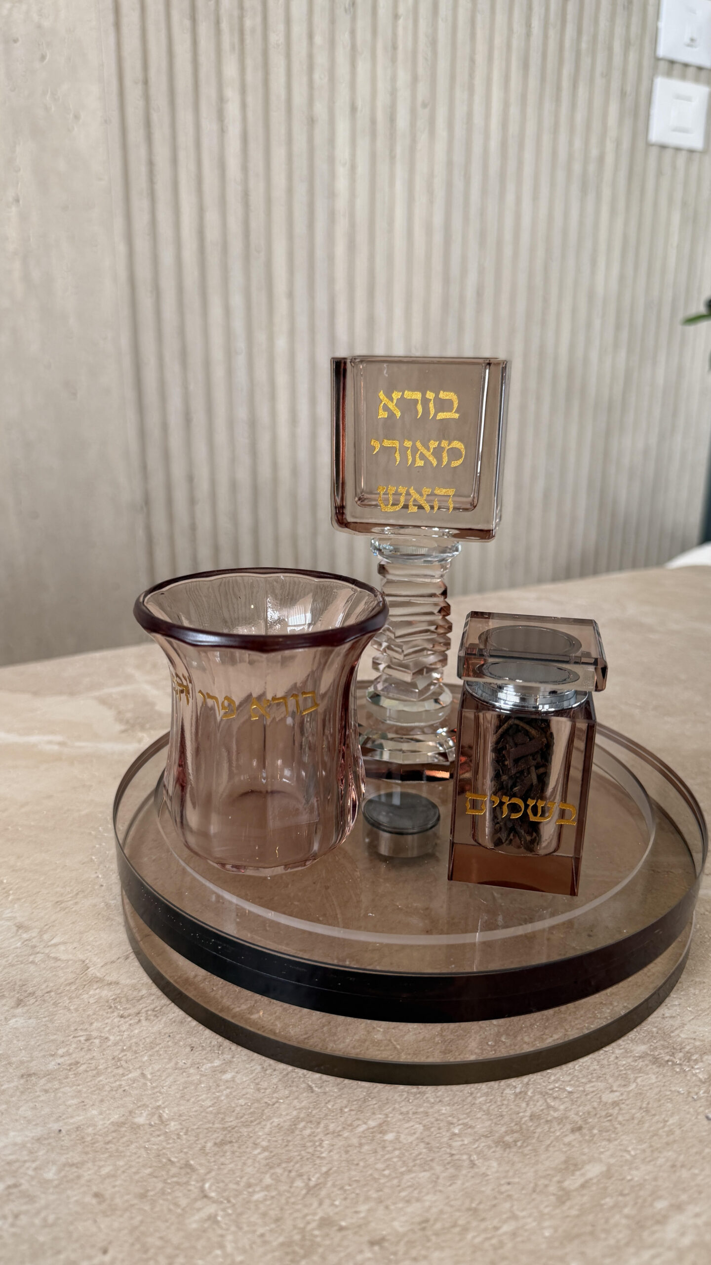 מעמד לנר, בשמים , כוס קידוש ומגש מסתובב