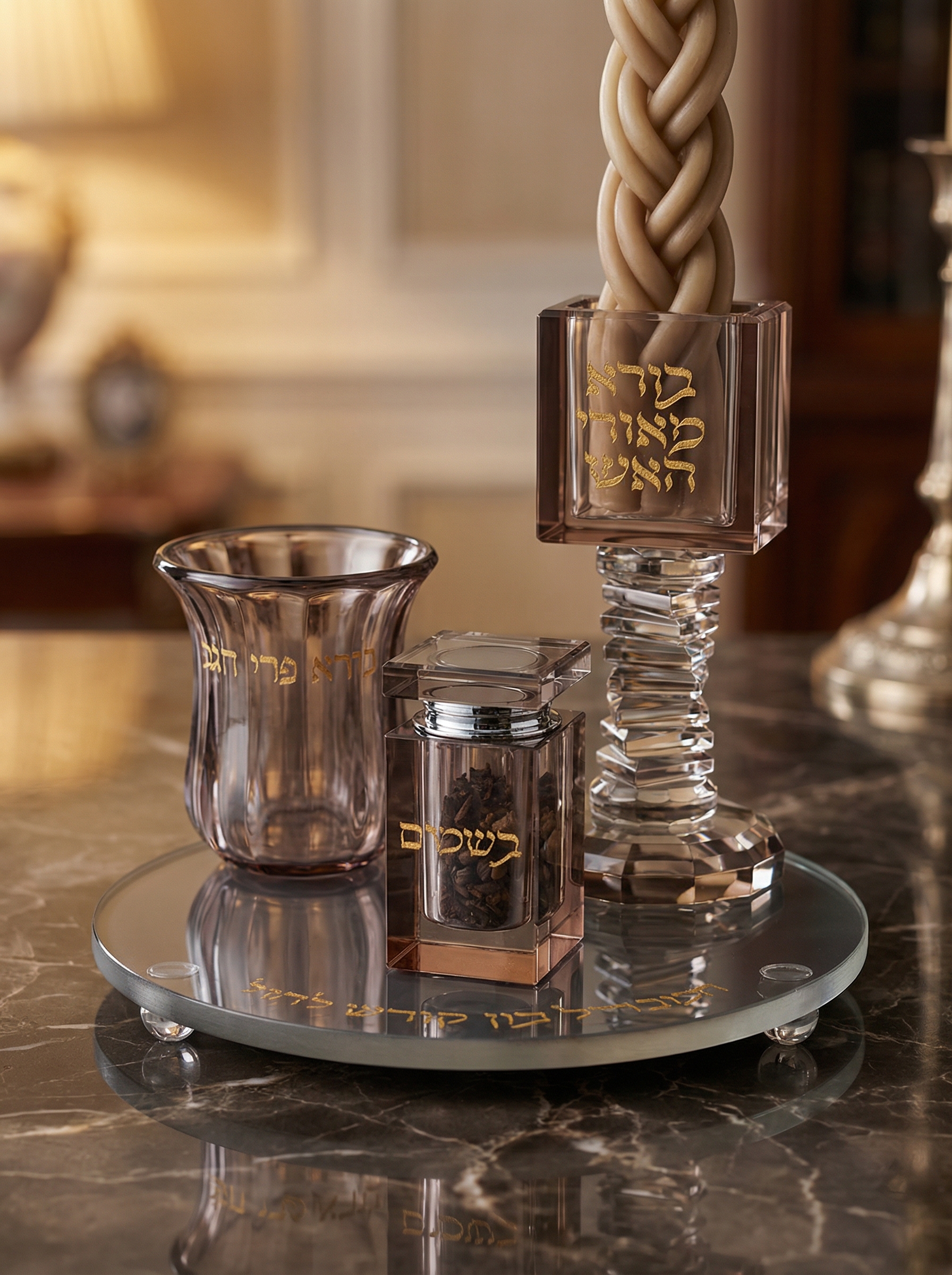 מעמד לנר , כוס קידוש , בשמים ומגש מרובע מסתובב