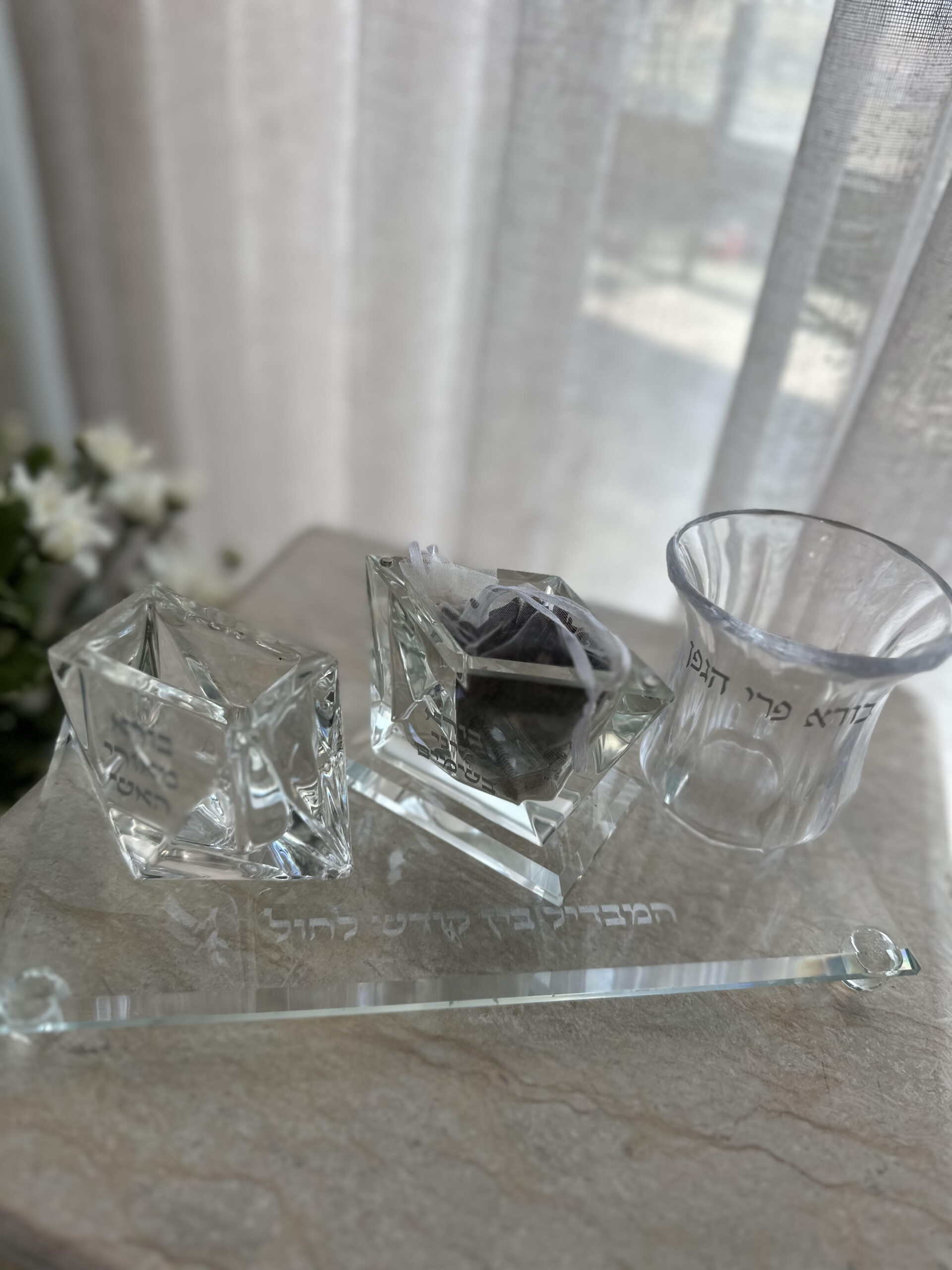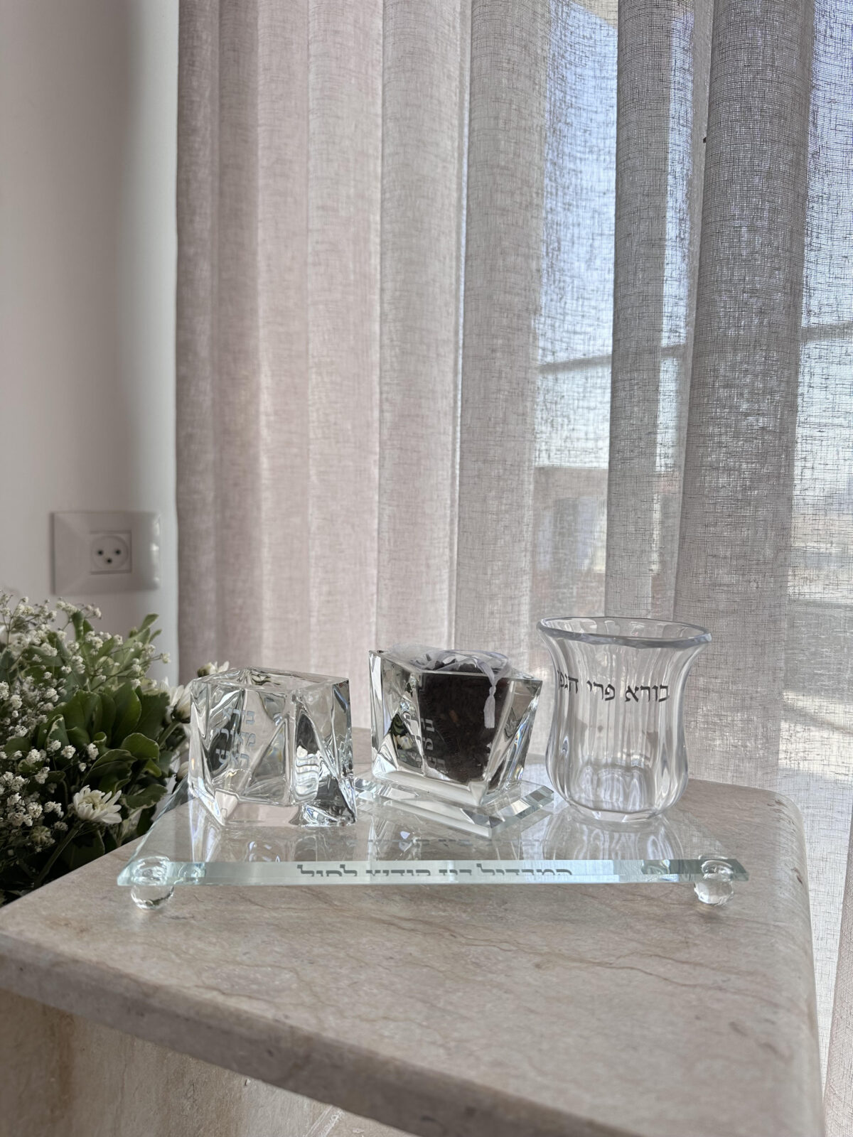 סט הבדלה מהודר קריסטל עם מגש 24X12 ס”מ