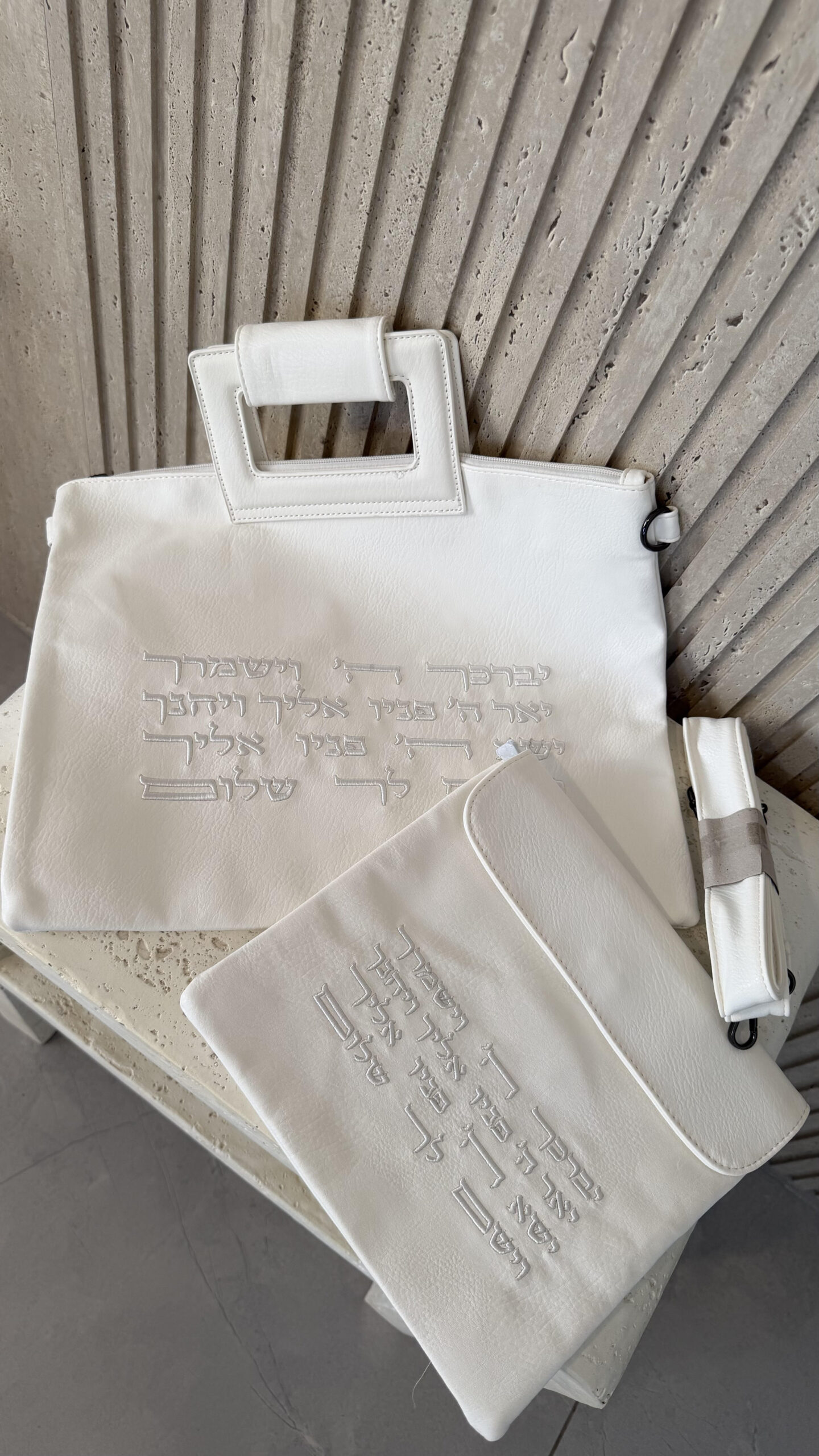 סט כיסויים- יברכך לבן רקמה