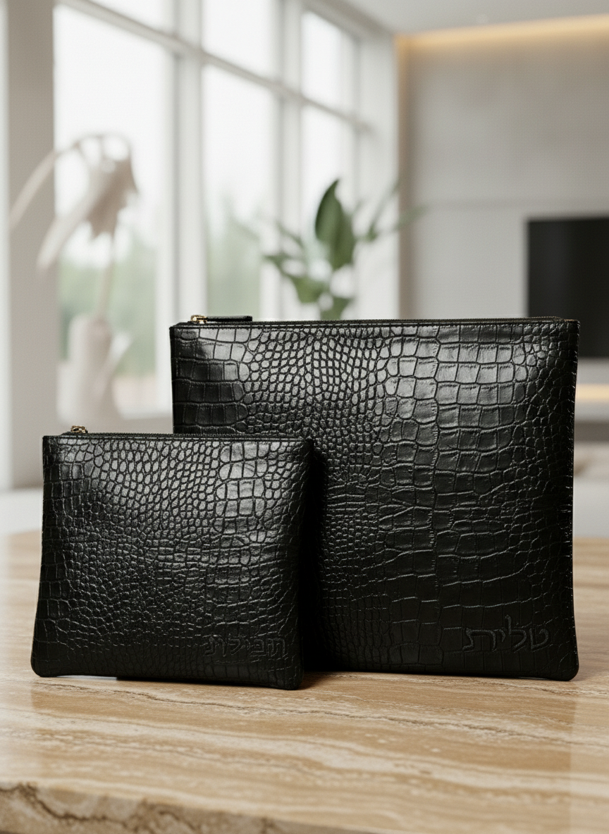 סט טלית תפילין דמוי עור מהודר 29/36 ס”מ