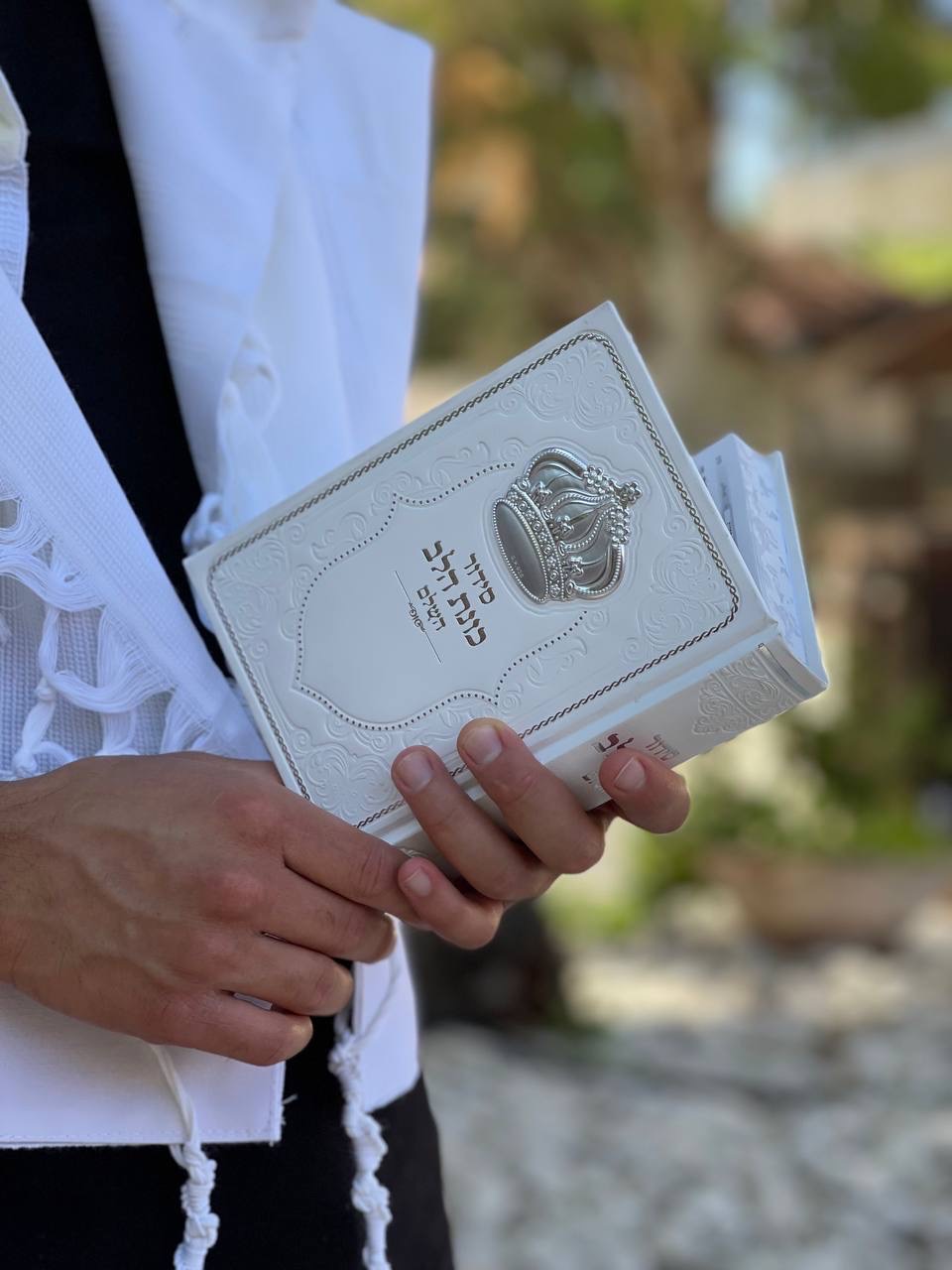 סידור כוונת הלב השם לגבר, צבע לבן כתר ציפוי כסף 925.