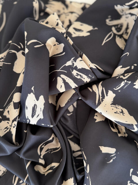 דגם פרחים עדינים שחור סטן-לונג