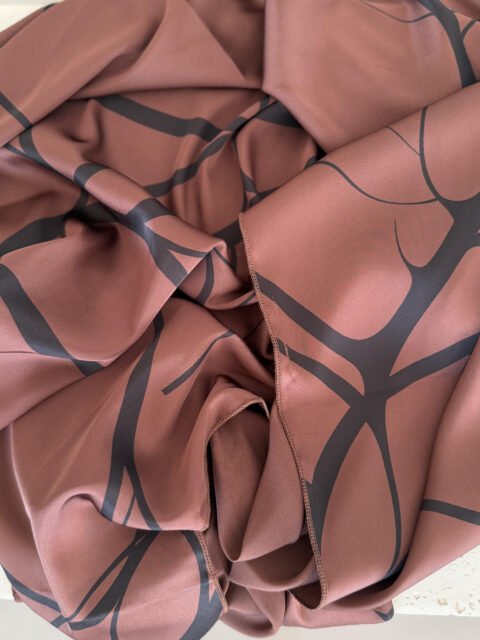 דגם פרחים עדינים חום סטן-לונג