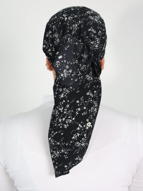 דגם פרחים עדינים שחור קרפ -כיסוי מלא